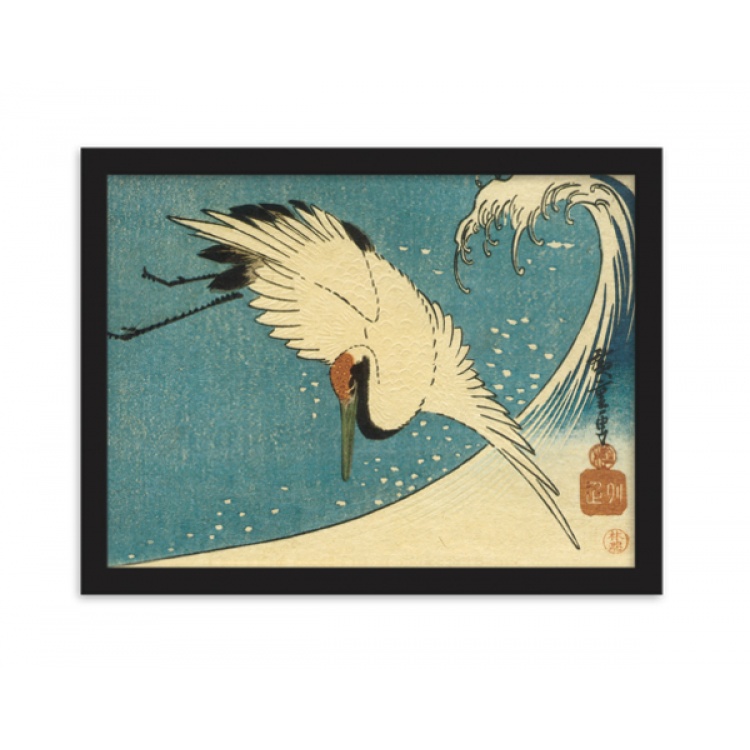 Print of "Crane and Wave" by Hiroshige 1830s.