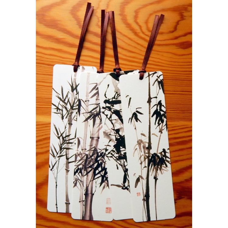 Set of bookmarks featuring traditional Chinese ink paintings of bamboo.