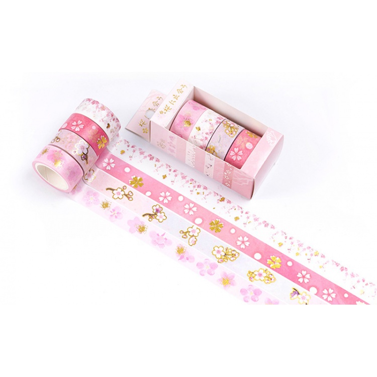 Washi Tape Rolls with Pink and Gold Cherry Blossom Designs