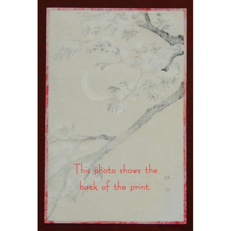 Hand-printed in the 1930s, featuring a tree branch covered with blossom and crescent moon.