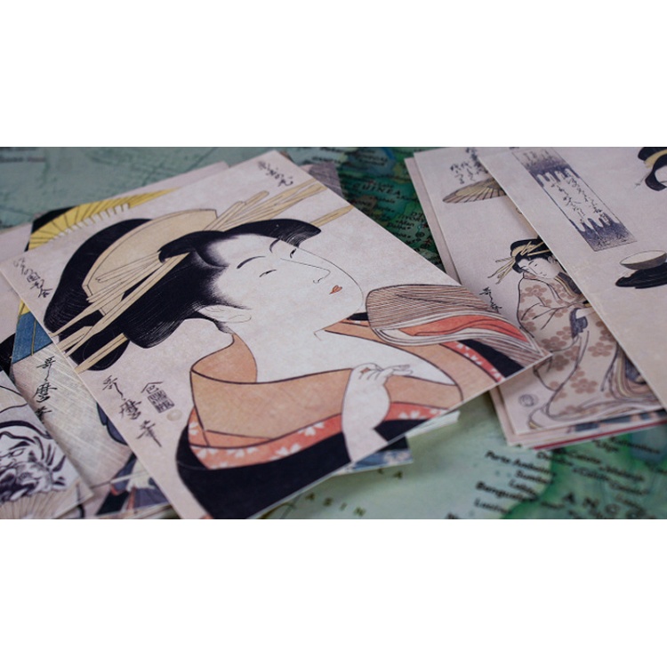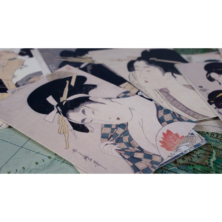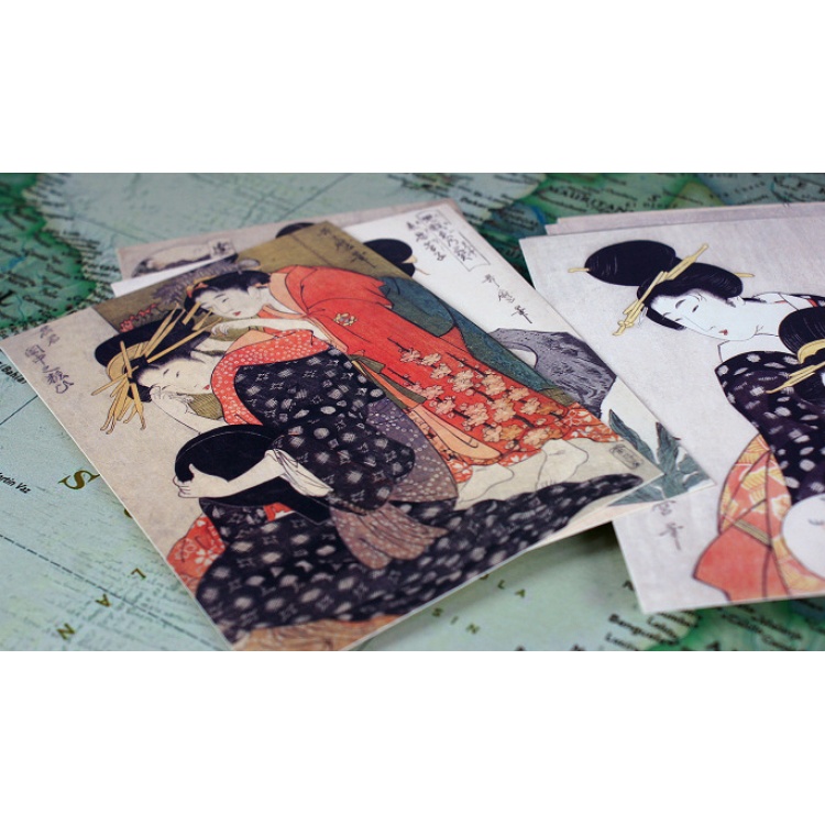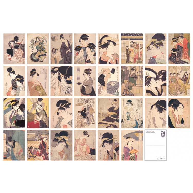 Boxed set of 30 postcards featuring featuring prints by Japanese artist Kitagawa Utamaro (1753-1806)