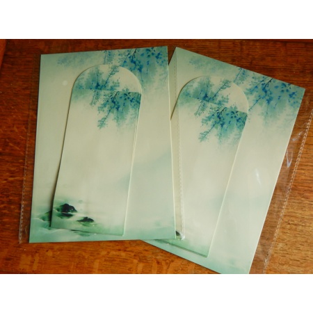 Set of writing paper and envelopes with design of peaceful stream and tree branches